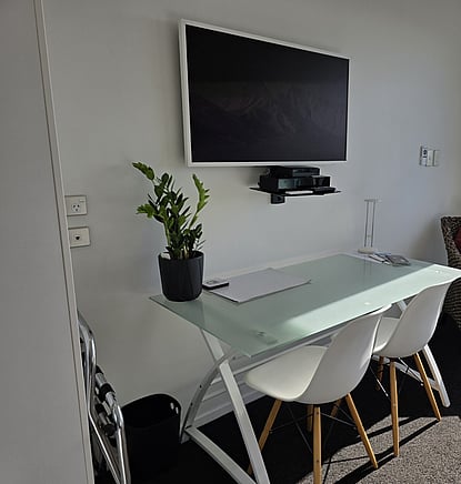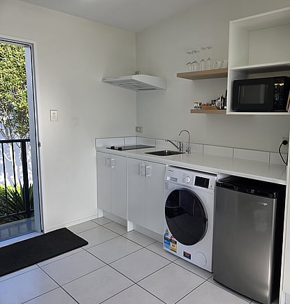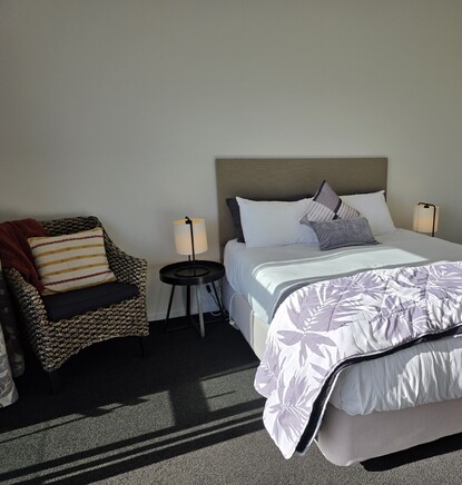 Our room is well equipped for a comfortable stay with quality linen, a tv (Access to streaming options through hotspot), kitchenette, private bathroom with a walk-in shower and complimentary toiletries.